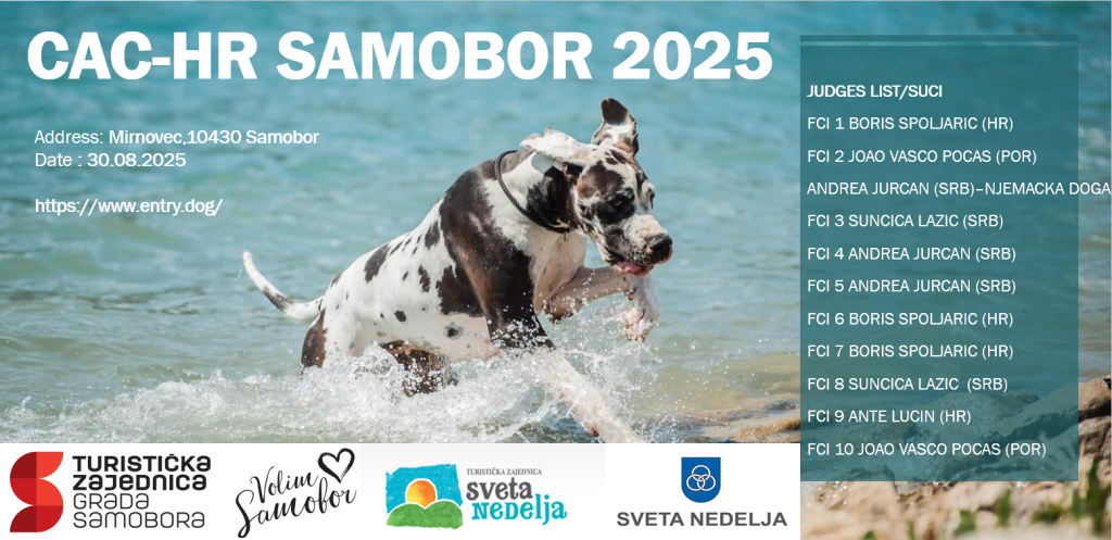 izložbe / dog shows ~ CAC Samobor ~30.08.2025.Prijave zatvorene! Hvala svima koji su prijavili svog psa. Online prijave preko E-Dog aplikacijeOnline entries via E-Dog app Psa možeš prijaviti putem online programa za prijave E-Dog na linku https://www.entry.dog Enter Your dog NOW ! Click the button below: Prijavi psa